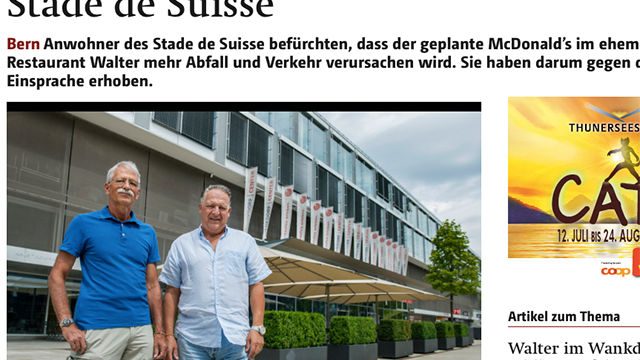 Ende Mai 2016 schloss das Restaurant Walter im Wankdorfstadion. McDonald's Schweiz kündete darauf die Eröffnung eines Take-Away per September 2016 an. mehr Text